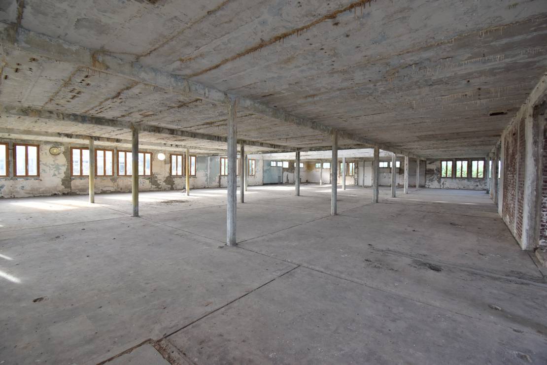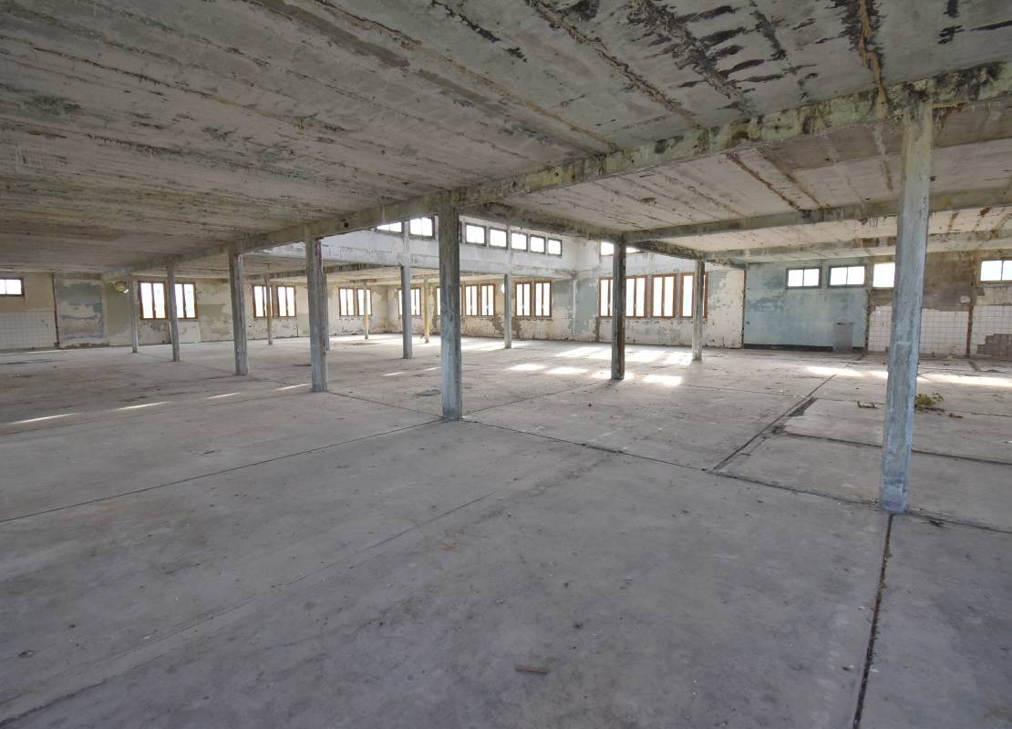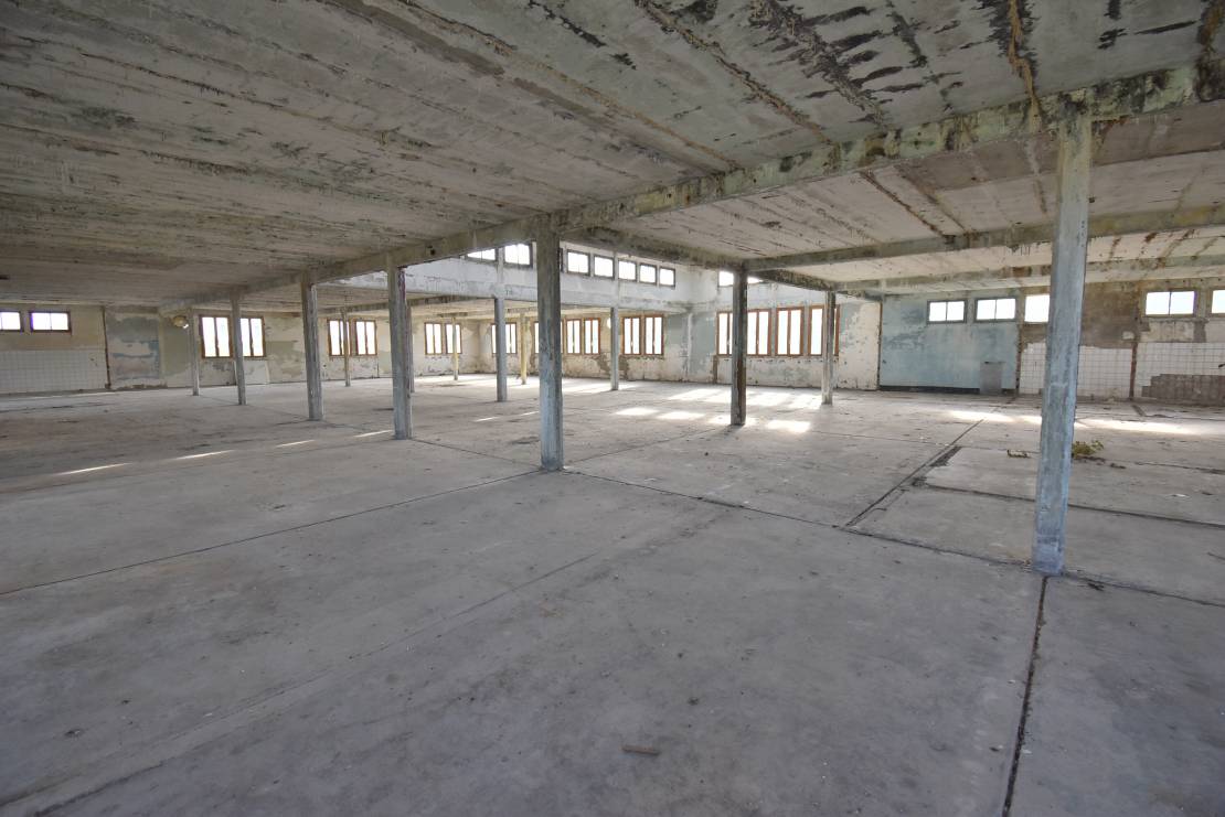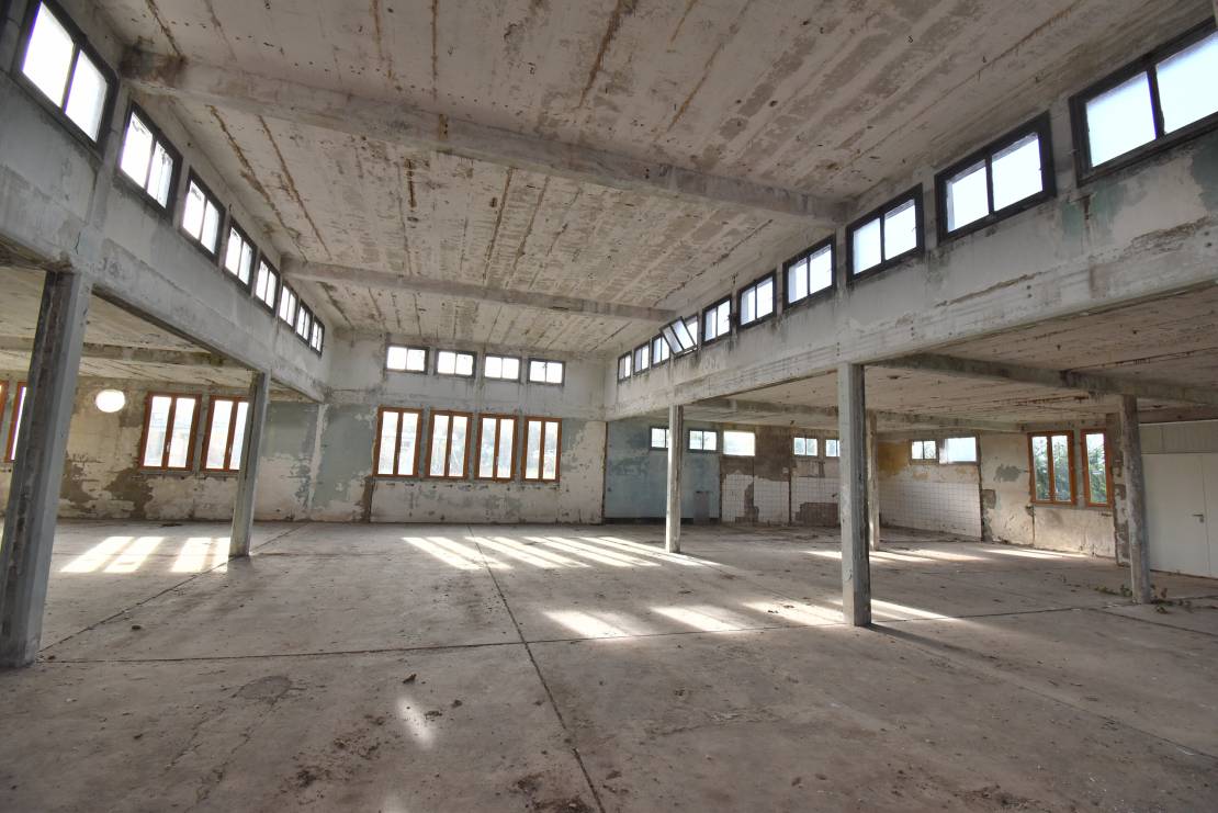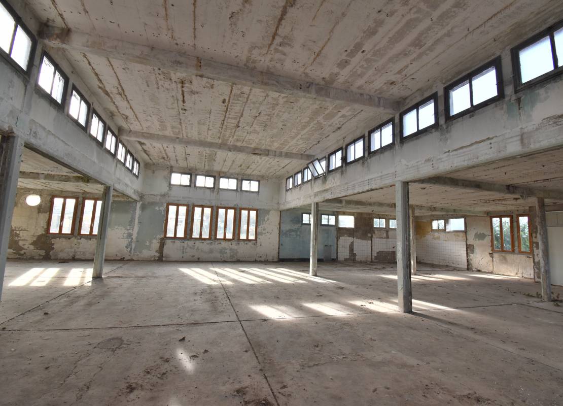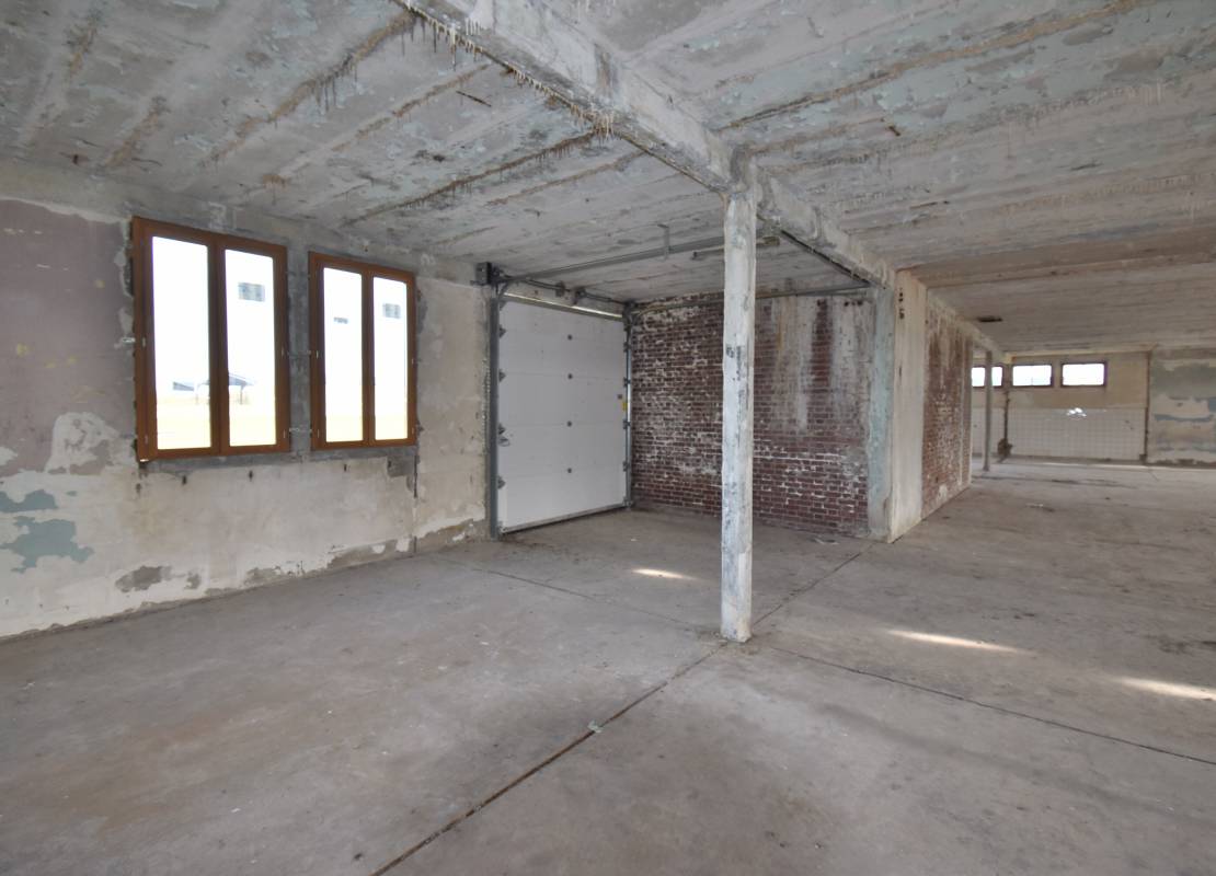 Local en structure parpaing, dalle béton, toit récent en tôles, plafond en dalles alvéolaires, fenêtres en double vitrage bois.