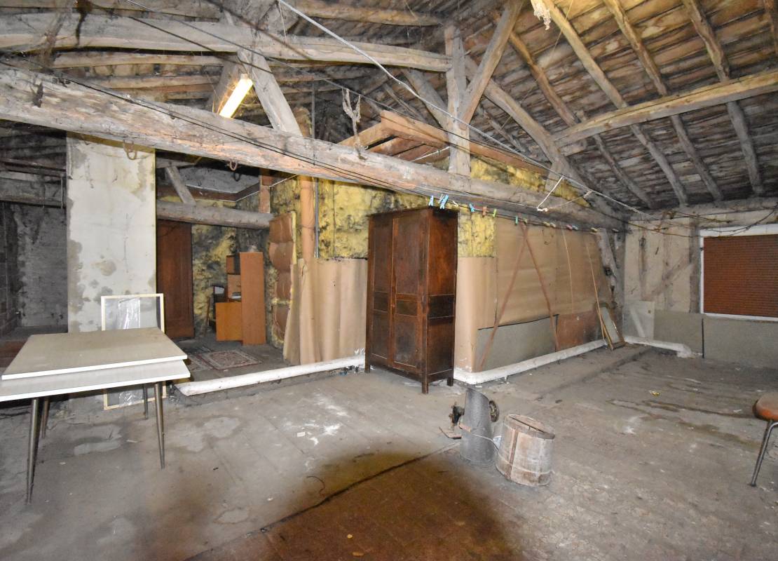 A l'étage, un palier, deux chambres et un grenier avec une belle charpente qui est aménageable.