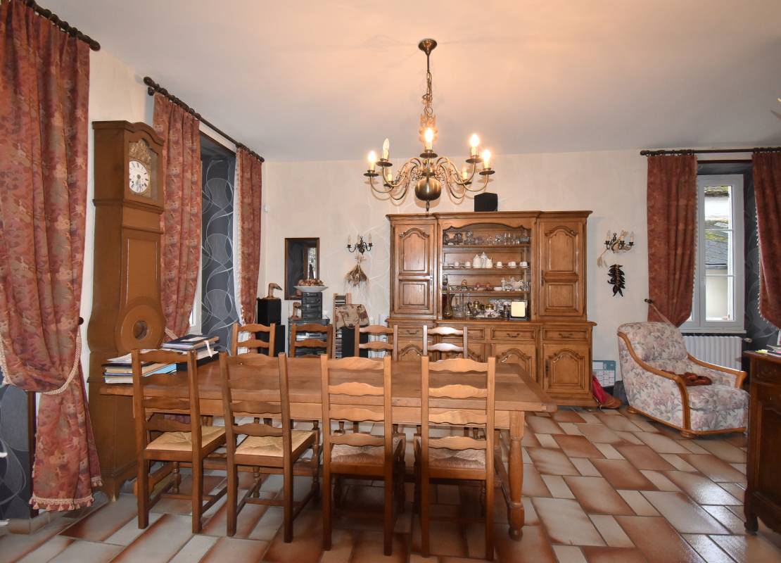 La maison d'habitation se développe sur 3 niveaux. Au rez-de-chaussée, une cuisine, une grande pièce de vie avec cheminée, une salle à manger, un cellier et un WC avec son point d'eau.