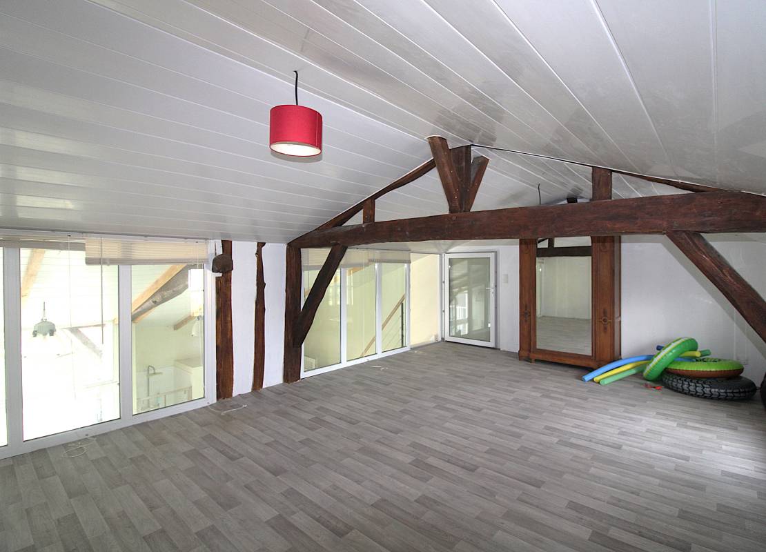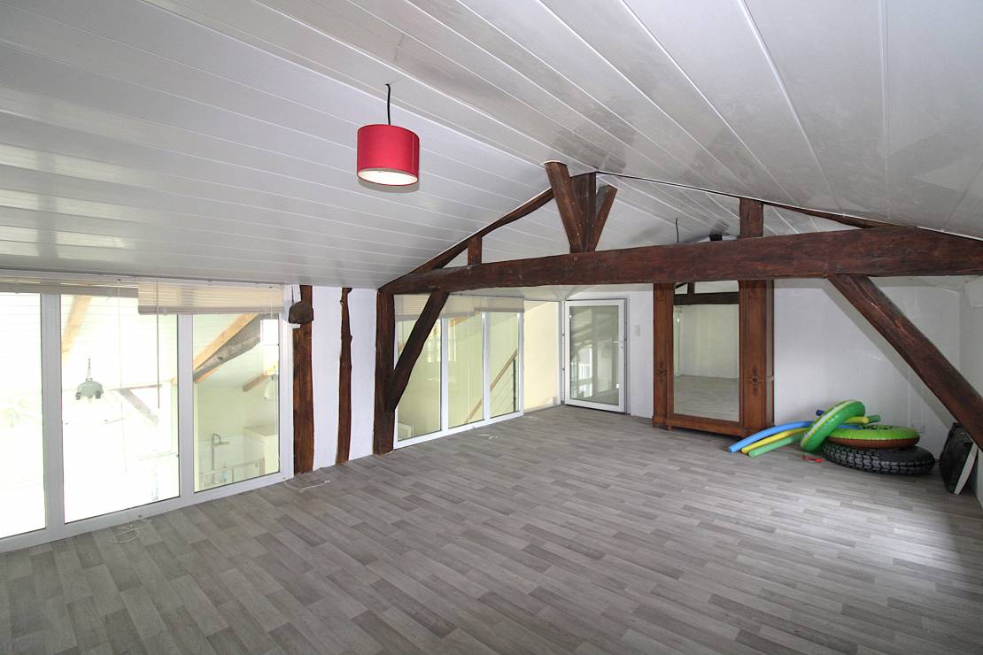 À l'étage, une grande chambre de 25 m², un bureau, ainsi qu'une salle d'eau avec WC complètent cet espace nuit.