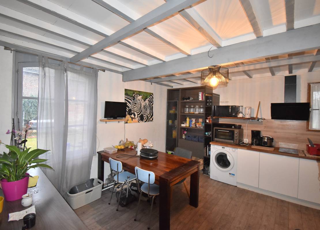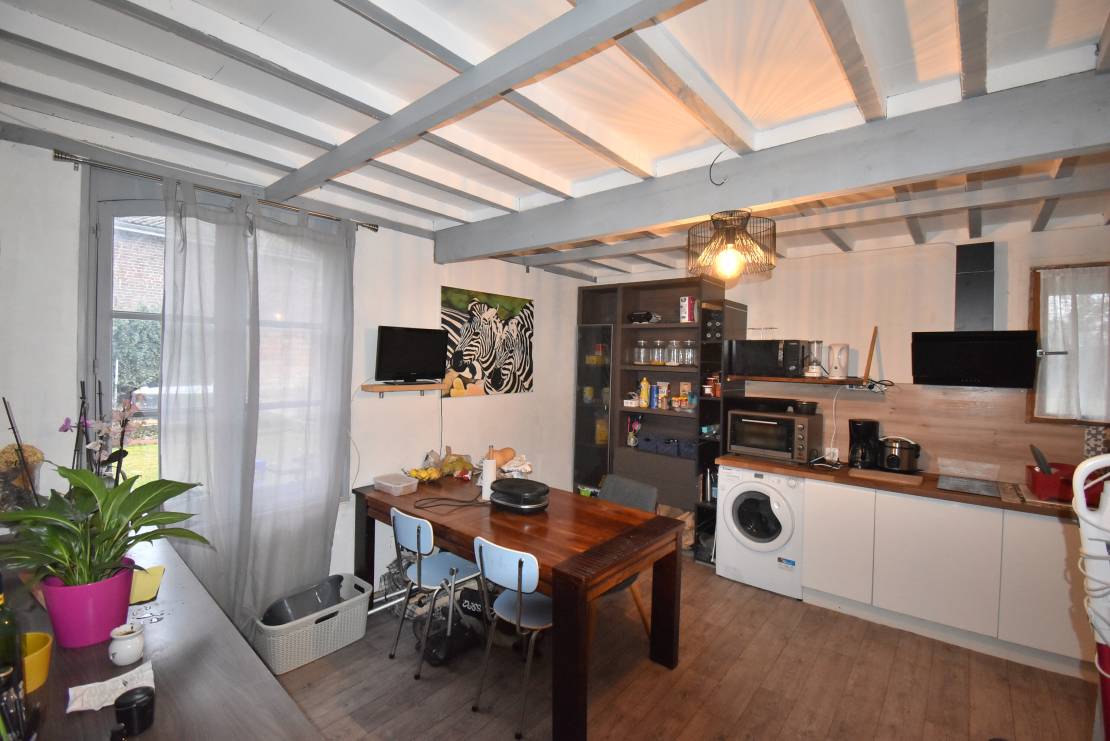 composée au rez-de-chaussée d'une pièce de vie avec un insert bois, une cuisine aménagée,