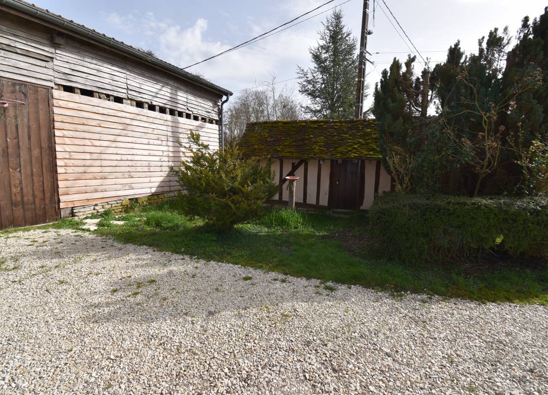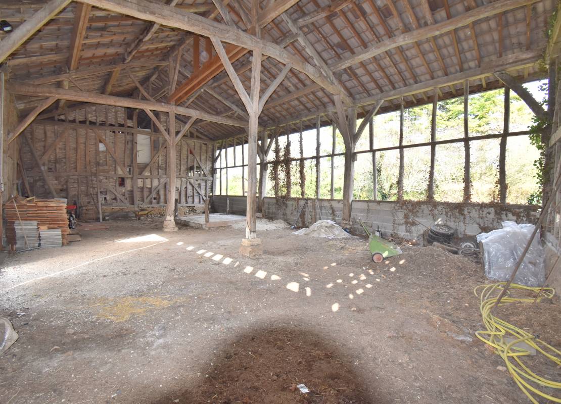 A l'extérieur, une grande grange de 185m² avec une belle hauteur sous plafond, une petite dépendance et une terrasse couverte de 9m². Un grand jardin de 2 302m² .
