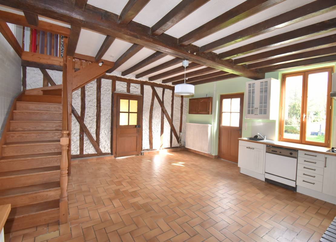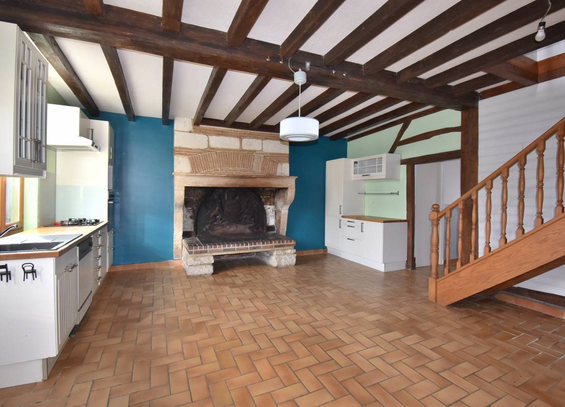 La maison se compose au rez-de-chaussée d'une grande cuisine, d'une belle pièce de vie, de deux chambres, d'un couloir distribuant une chaufferie, un cellier et une salle de bain.