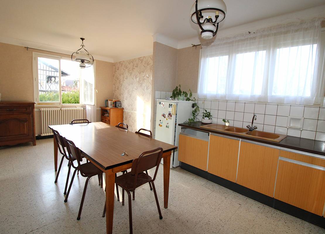 Ce pavillon offre au rez-de-chaussée : une entrée, une grande cuisine aménagée avec coin repas, un salon lumineux donnant accès à un balcon, ainsi que quatre chambres munies d'un beau parquet. Vous y trouverez également une salle de bains, une salle d'eau avec douche et un WC indépendant.