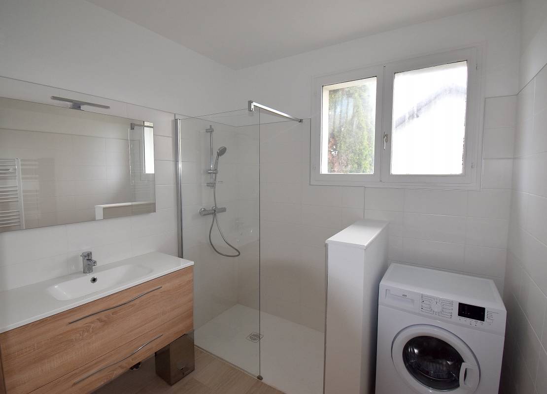 Descriptif: Loue maison 3 pièces meublée sur sous-sol surélevé refaite à neuf. Entrée avec placards, pièce de vie de 31m² avec cuisine aménagée et équipée (lave vaisselle, machine à laver, plaque, four, hotte, frigo) petit balcon. Dégagement avec placard desservant les 2 chambres, la salle d'eau et les WC.