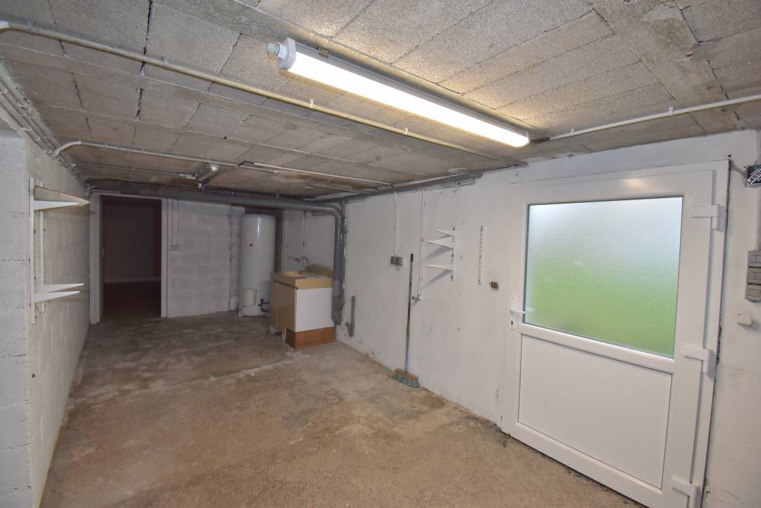 La maison se compose d'une grande pièce de vie avec une cuisine semi-ouverte non équipée et non aménagée, trois chambres, une salle d'eau et un WC séparé. Au sous-sol, un grand garage et une pièce pouvant servir de chambre ou d'atelier.
